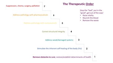 High levels of intervention are necessary for high levels of pathology (disease). Remember to address EACH STEP for vibrant HEALTH!